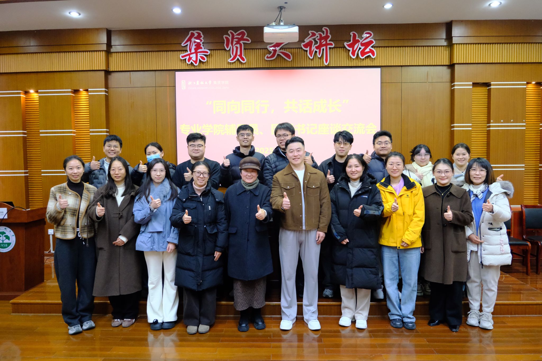 活动最后,集贤学院为求真学子辅导员、团委书记颁发了聘书并合影留念。(文/何静怡 图/朱缘玉润)