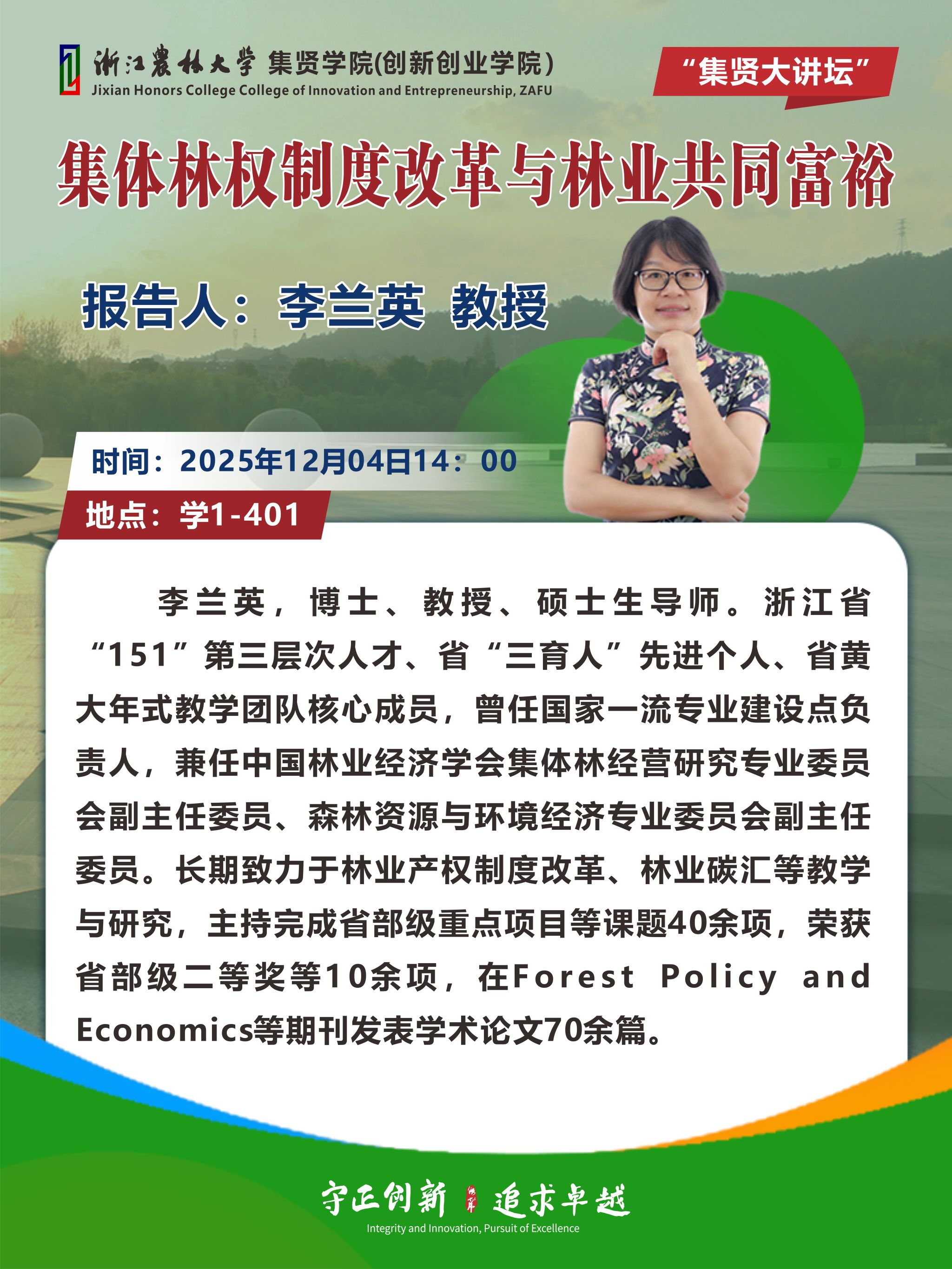 “集贤大讲坛”预告——李兰英教授:集体林权制度改革与林业共同富裕