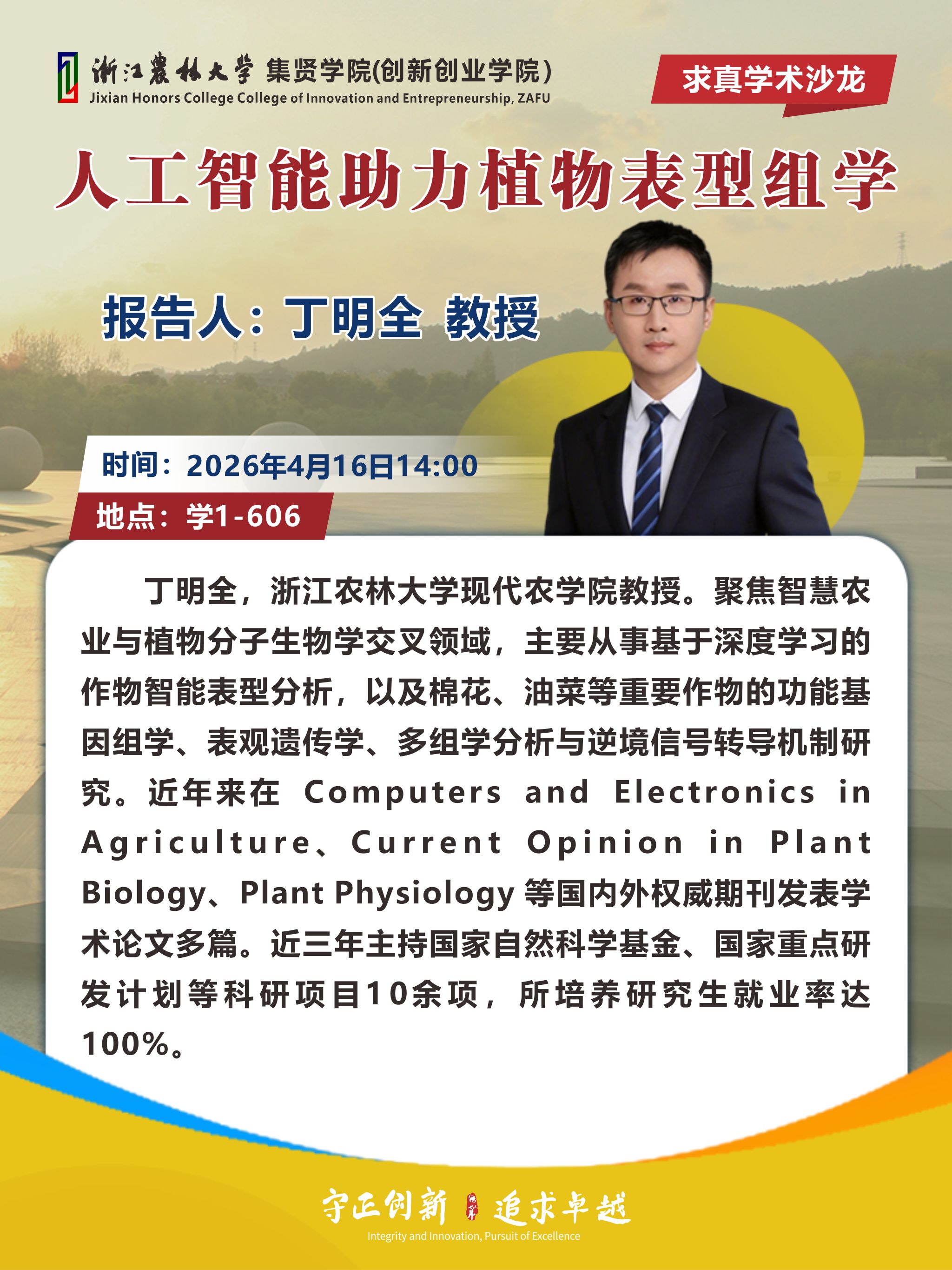 “求真学术沙龙”预告——丁明全教授:人工智能助力植物表型组学